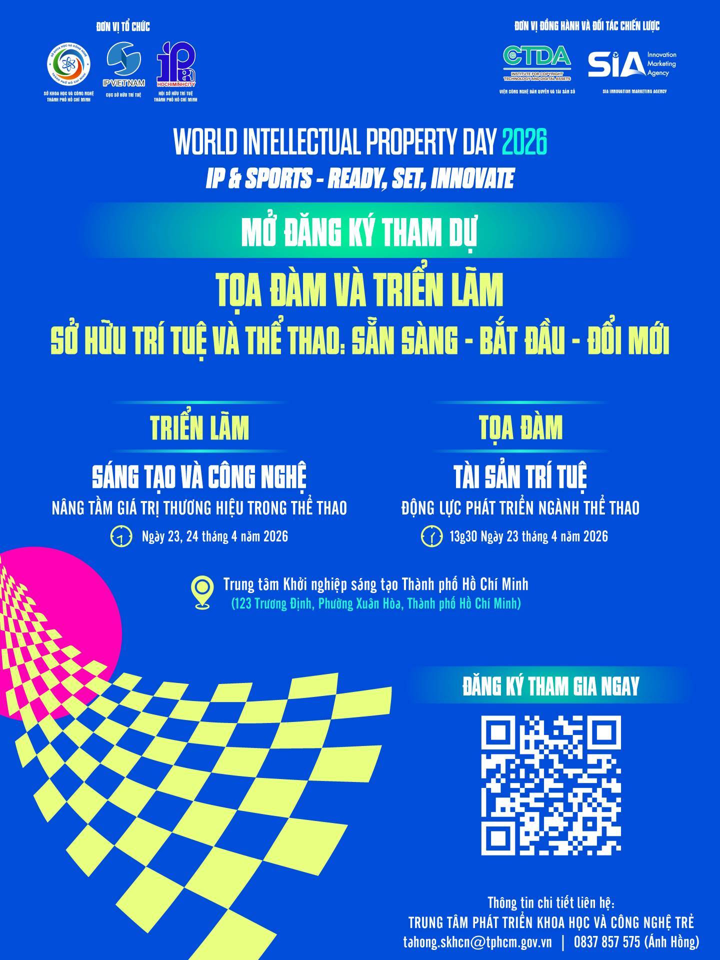 Theo đó, chương trình tọa đàm “Tài sản trí tuệ – Động lực phát triển ngành thể thao” sẽ diễn ra vào lúc 13 giờ 30 phút ngày 23/4/2026 (Thứ Năm). Song song, hoạt động triển lãm “Sáng tạo và công nghệ – Nâng tầm giá trị thương hiệu trong thể thao” được tổ chức trong hai ngày 23 và 24/4/2026.