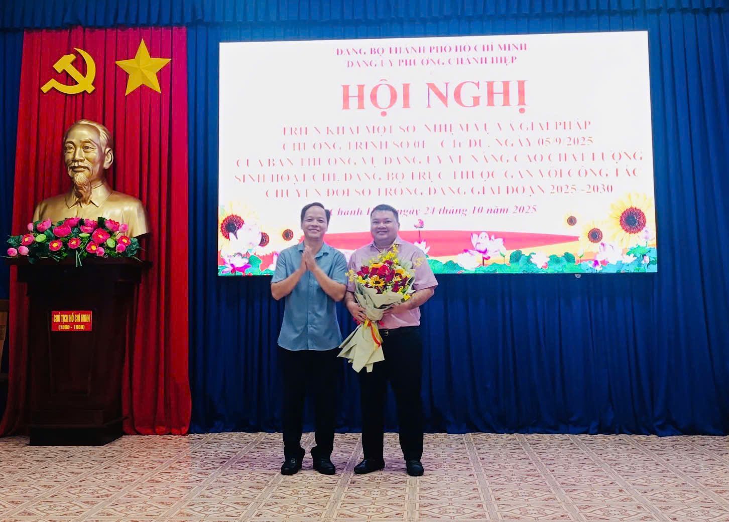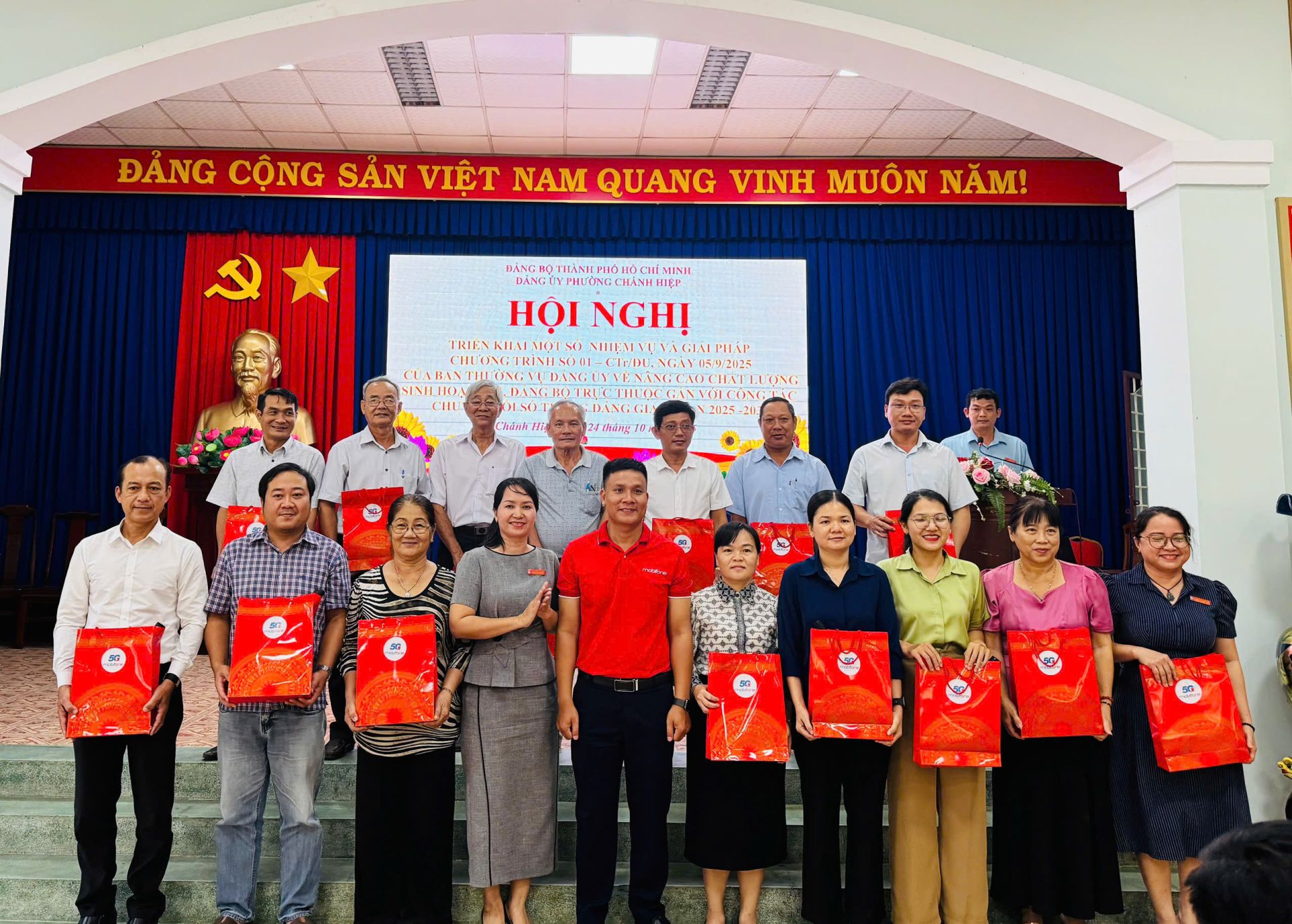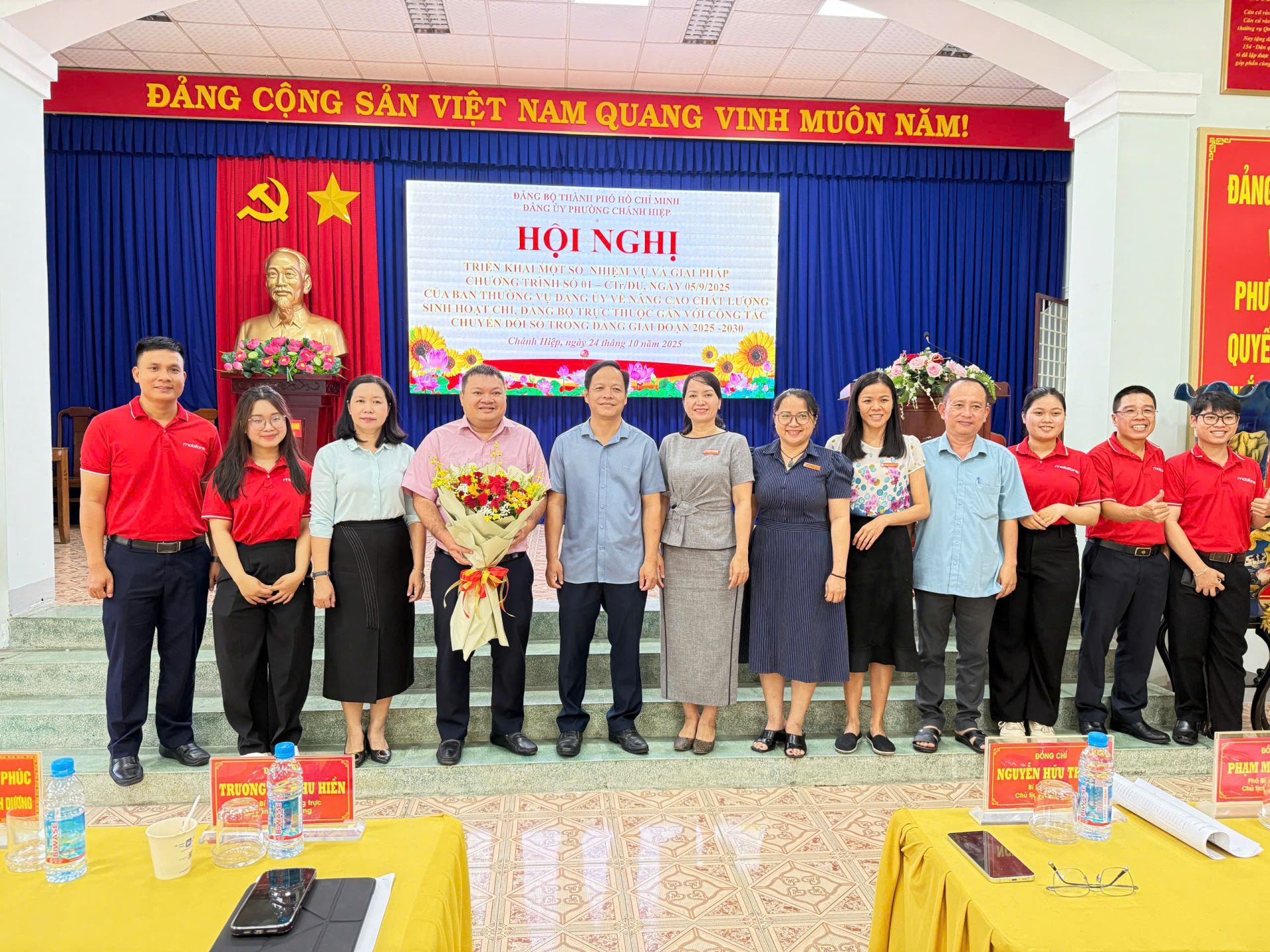 Nhằm triển khai thực hiện có hiệu quả Chương trình hành động thực hiện Nghị quyết Đại hội Đại biểu Đảng bộ phường Chánh Hiệp nhiệm kỳ 2025-2030 về “Nâng cao chất lượng sinh hoạt Chi bộ, Đảng bộ trực thuộc gắn với công tác chuyển đổi số trong Đảng giai đoạn 2025–2030”, sáng ngày 24/10/2025, Đảng ủy phường Chánh Hiệp phối hợp cùng Công ty Viễn thông Mobifone triển khai các nội dung công tác chuyển đổi số trong Đảng gắn với thực hiện mô hình "Chi bộ số" trong thời gian tới.