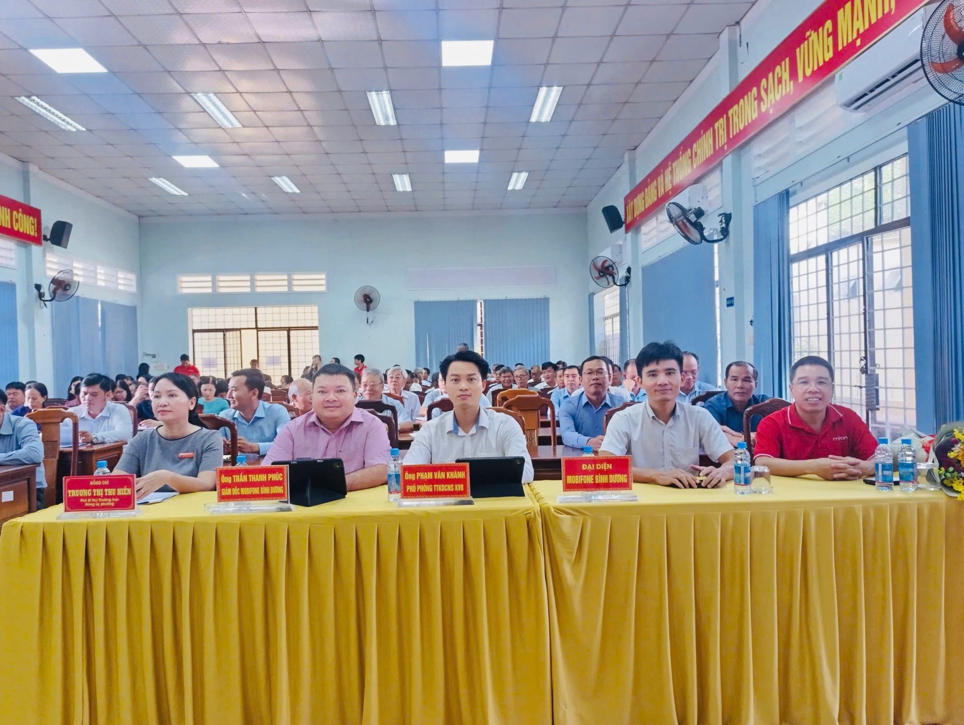 Tham dự Hội nghị có đồng chí Nguyễn Hữu Thạnh - Bí thư Đảng ủy , Chủ tịch HĐND phường; đồng chí Trương Thị Thu Hiền - Phó Bí thư Thường trực Đảng ủy phường; đồng chí Phạm Minh Thiện - Phó bí thư Đảng ủy- Chủ tịch UBND phường; cùng các đồng chí trong Ban Thường vụ, Ban Chấp hành Đảng bộ phường, cấp ủy các Chi, Đảng bộ trực thuộc và đảng viên Đảng bộ các cơ quan Đảng phường. Về phía Mobifone có đồng chí Trần Thanh Phúc - Giám đốc MobiFone Bình Dương.