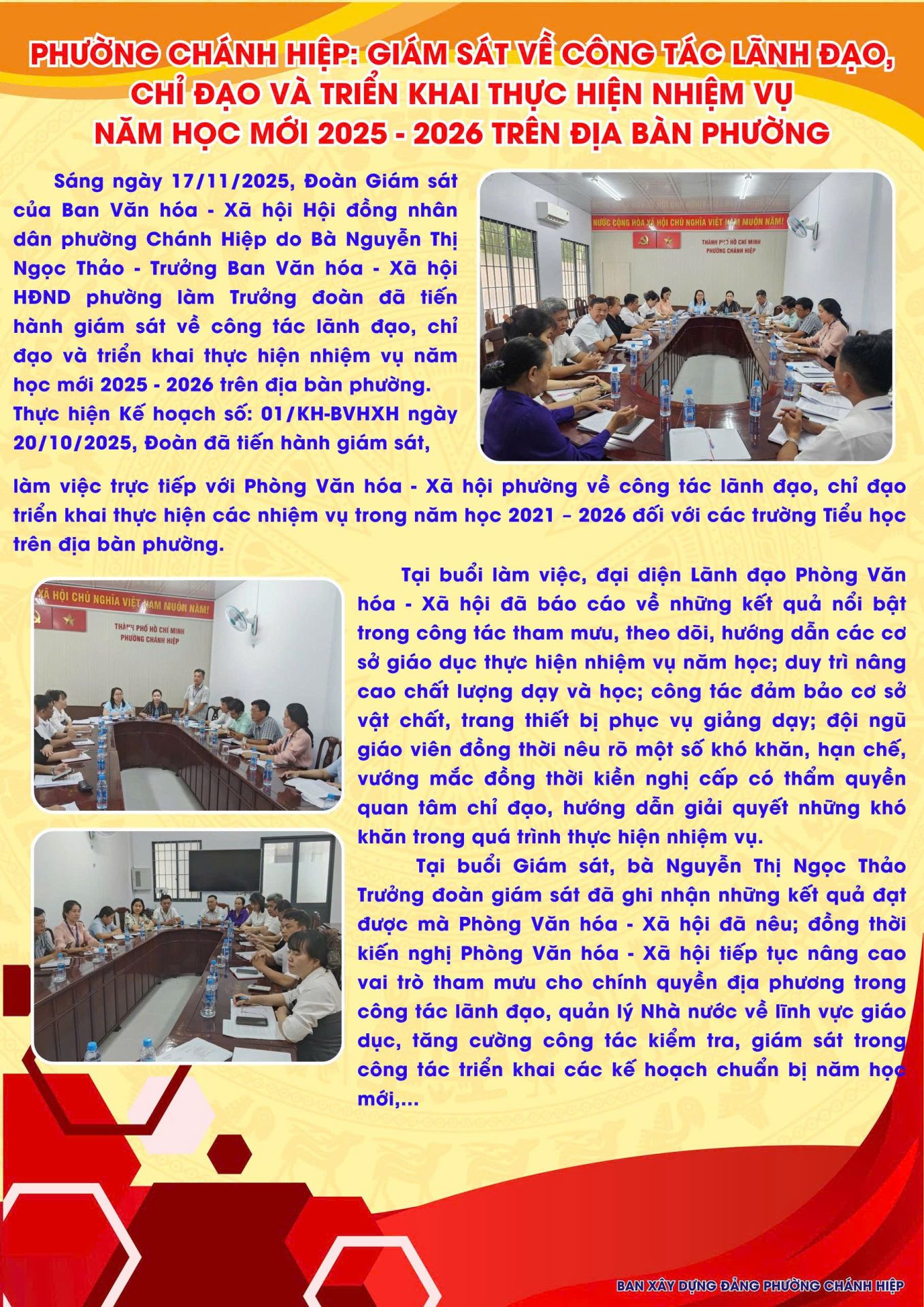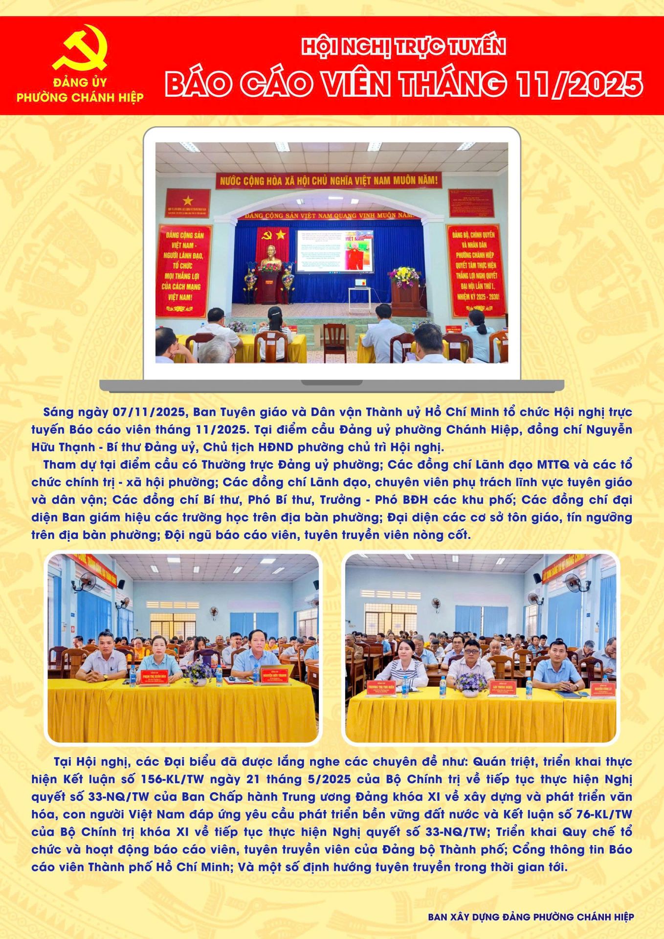 Điểm tin Ban Xây dựng Đảng phường Chánh Hiệp tháng 11 năm 2025.
