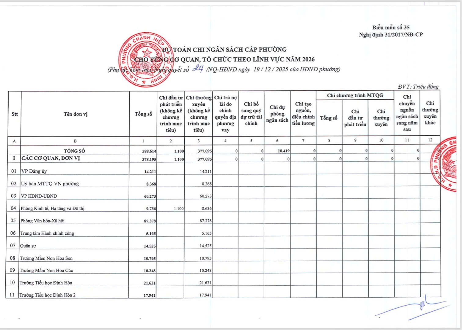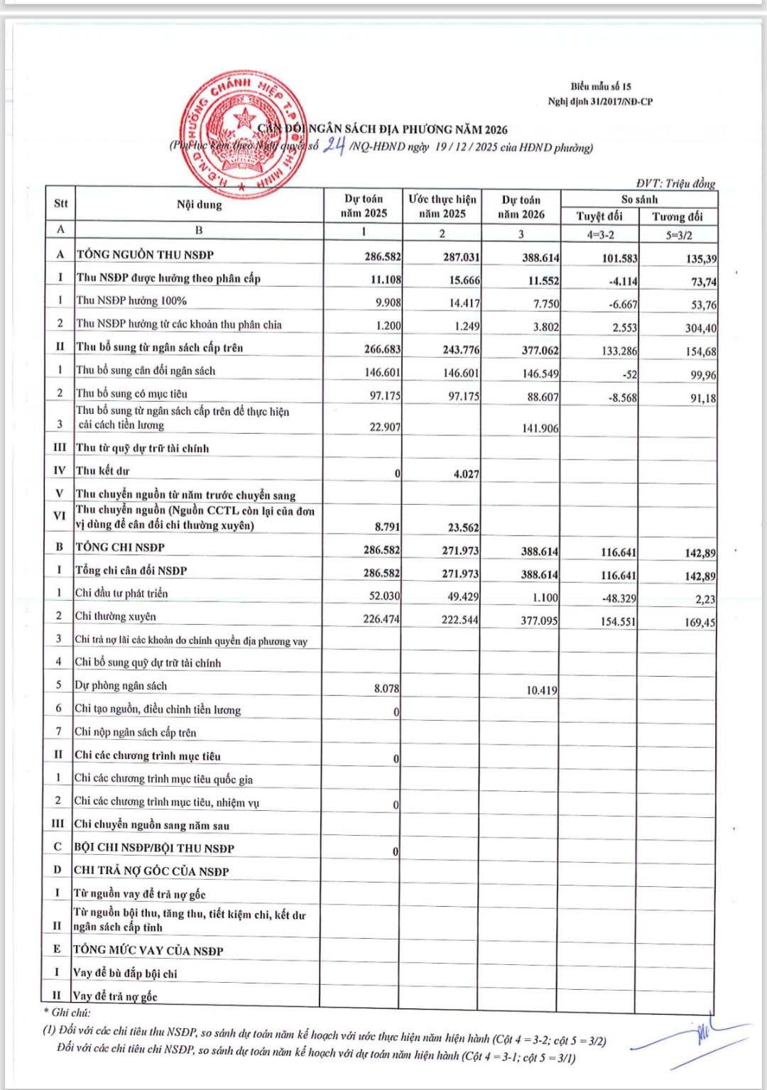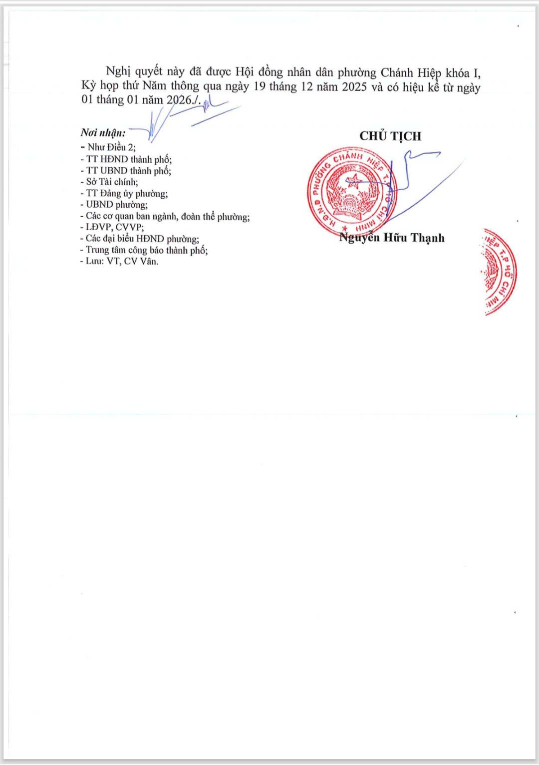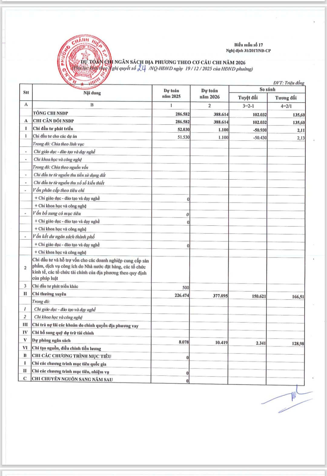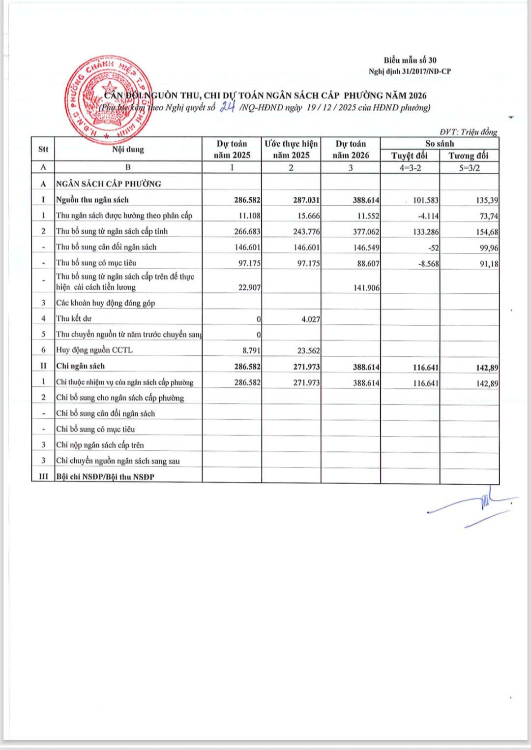 HỘI ĐỒNG NHÂN DÂN PHƯỜNG CHÁNH HIỆP BAN HÀNH NGHỊ QUYẾT SỐ 24/NQ-HĐND VỀ DỰ TOÁN THU, CHI VÀ PHÂN BỔ DỰ TOÁN NGÂN SÁCH NHÀ NƯỚC CỦA PHƯỜNG CHÁNH HIỆP NĂM 2026