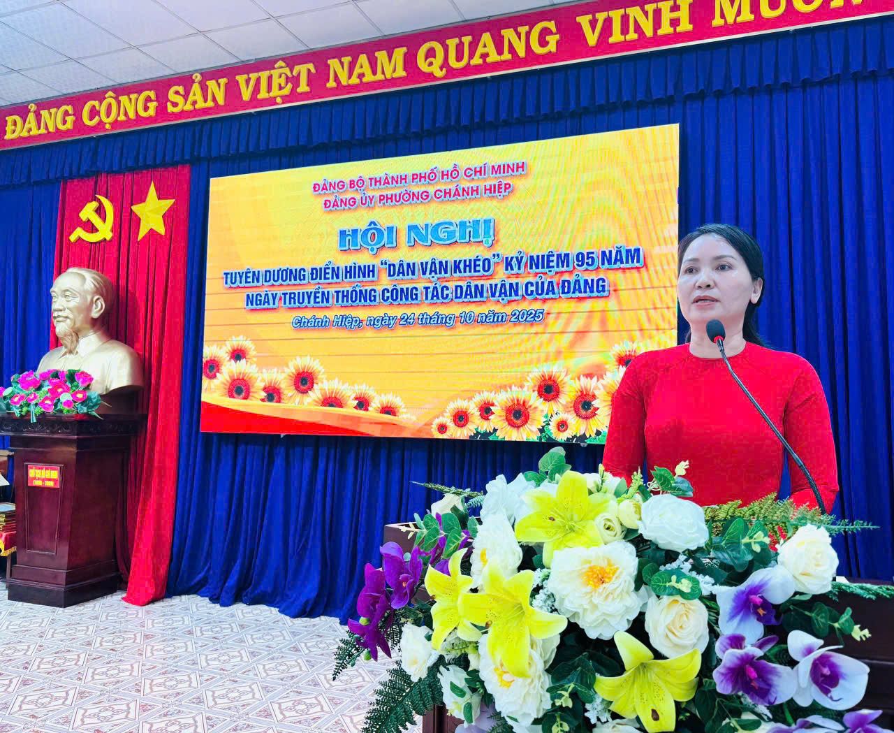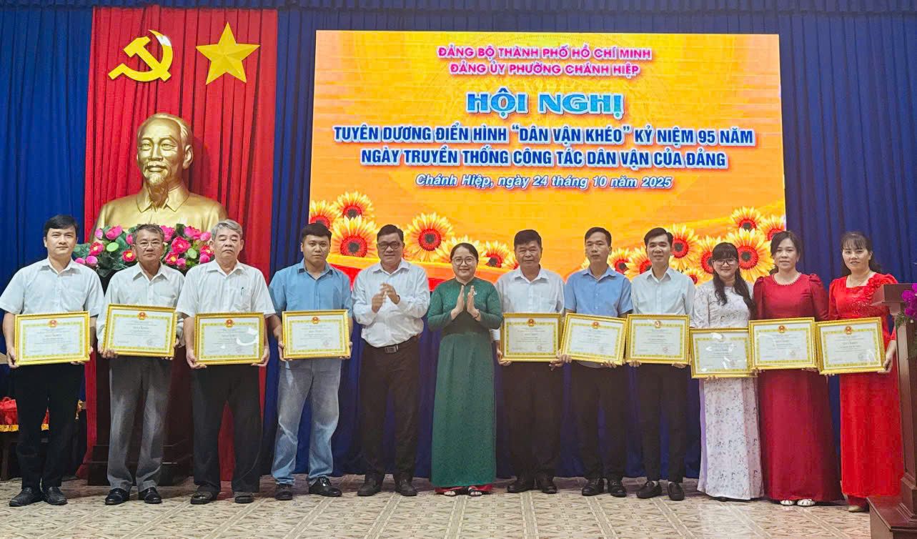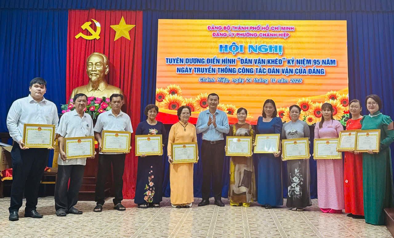 Chiều ngày 24/10/2025, Đảng ủy phường Chánh Hiệp tổ chức Hội nghị tuyên dương điển hình “Dân vận khéo” năm 2025, nhân kỷ niệm 95 năm Ngày truyền thống công tác Dân vận của Đảng.