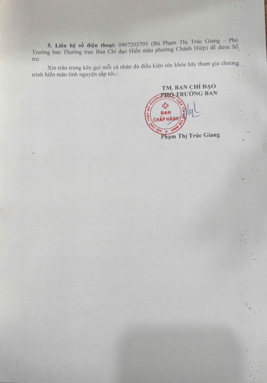 0907 203 793 (Đ/c Giang – Chủ tịch Hội Chữ thập đỏ phường)