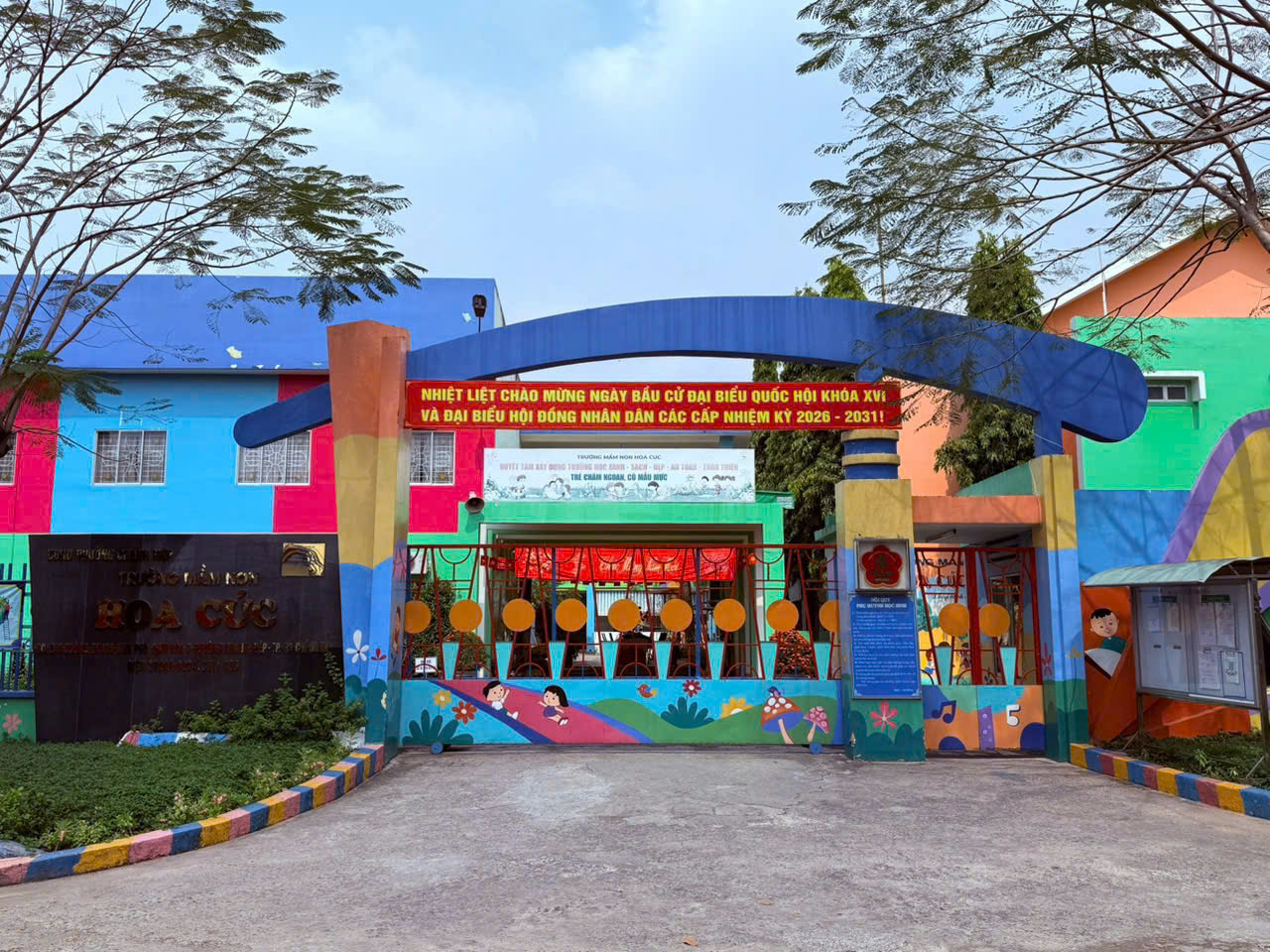 Tại các cổng trường, khuôn viên và khu vực tập trung đông người, các băng rôn, khẩu hiệu với nội dung “Nhiệt liệt chào mừng Ngày bầu cử đại biểu Quốc hội khóa XVI và đại biểu Hội đồng nhân dân các cấp nhiệm kỳ 2026 – 2031” được treo trang trọng, nổi bật, tạo không khí rộn ràng, phấn khởi ngay từ những ngày đầu năm.
