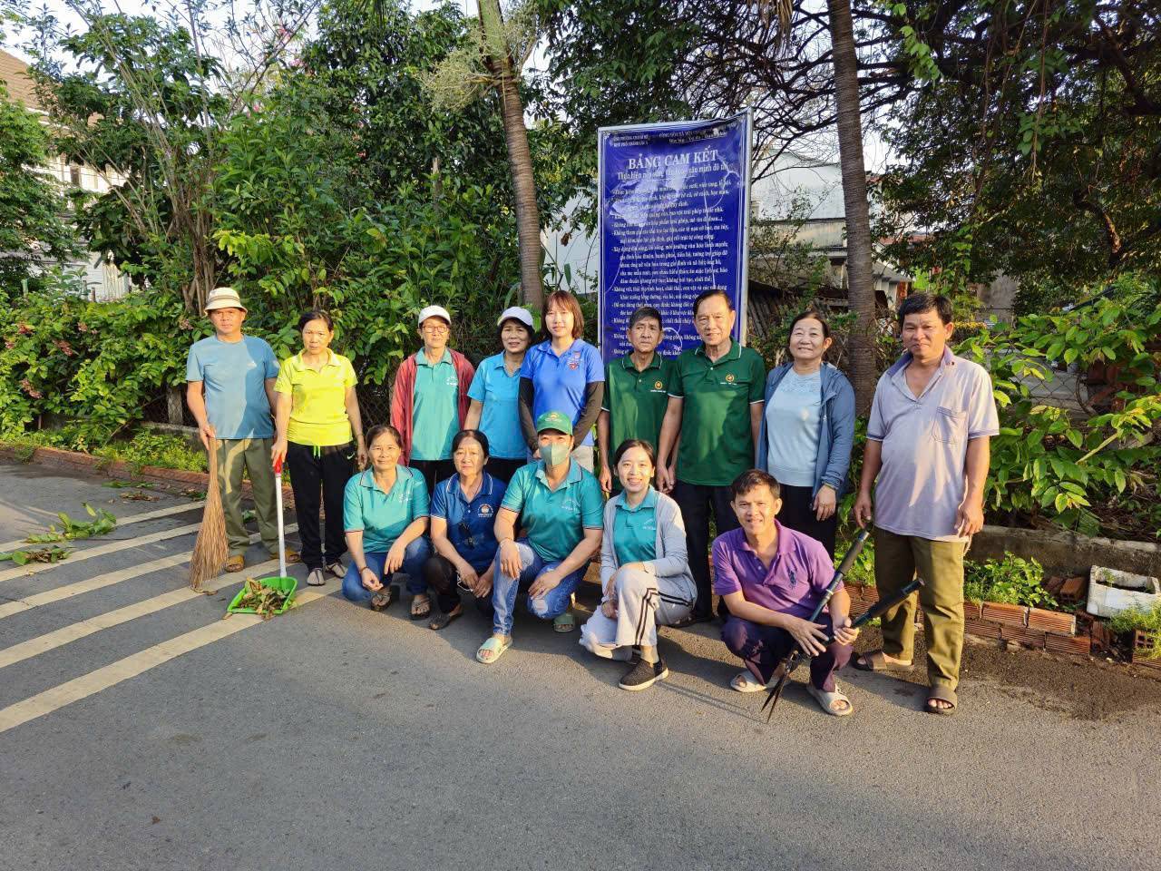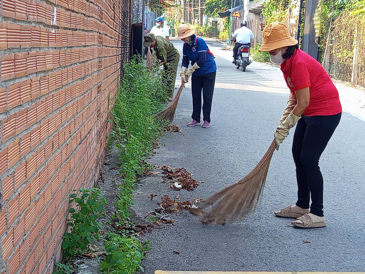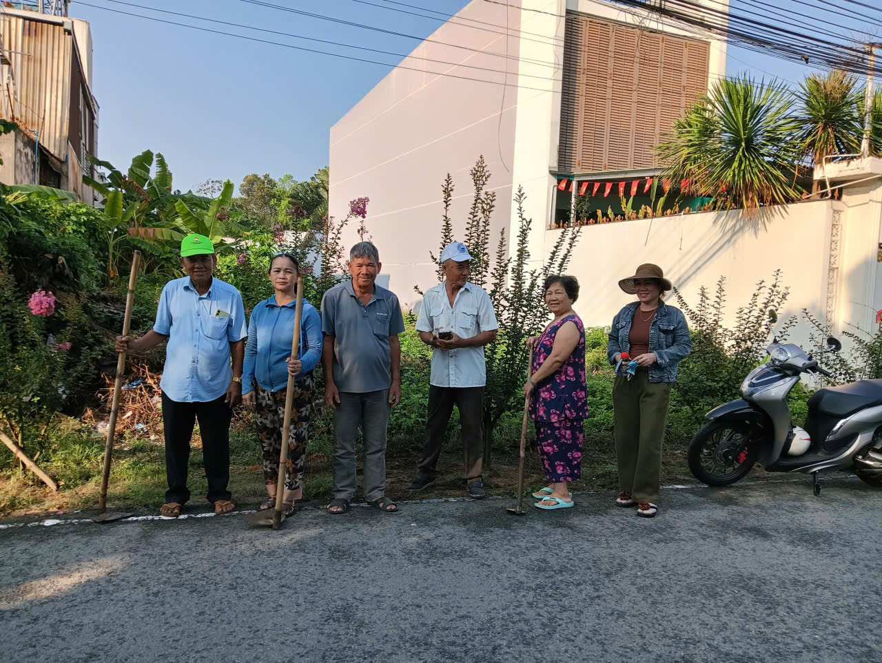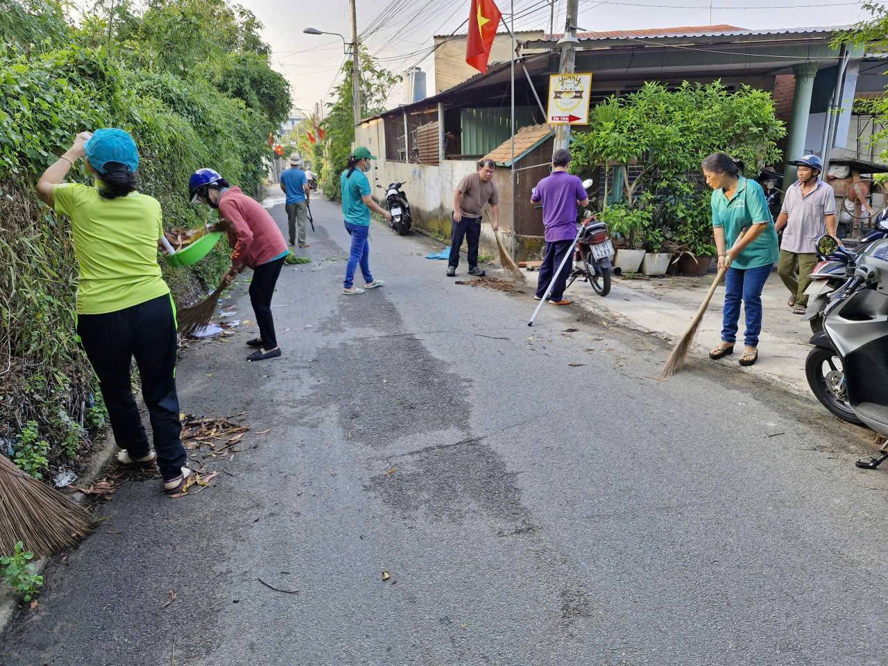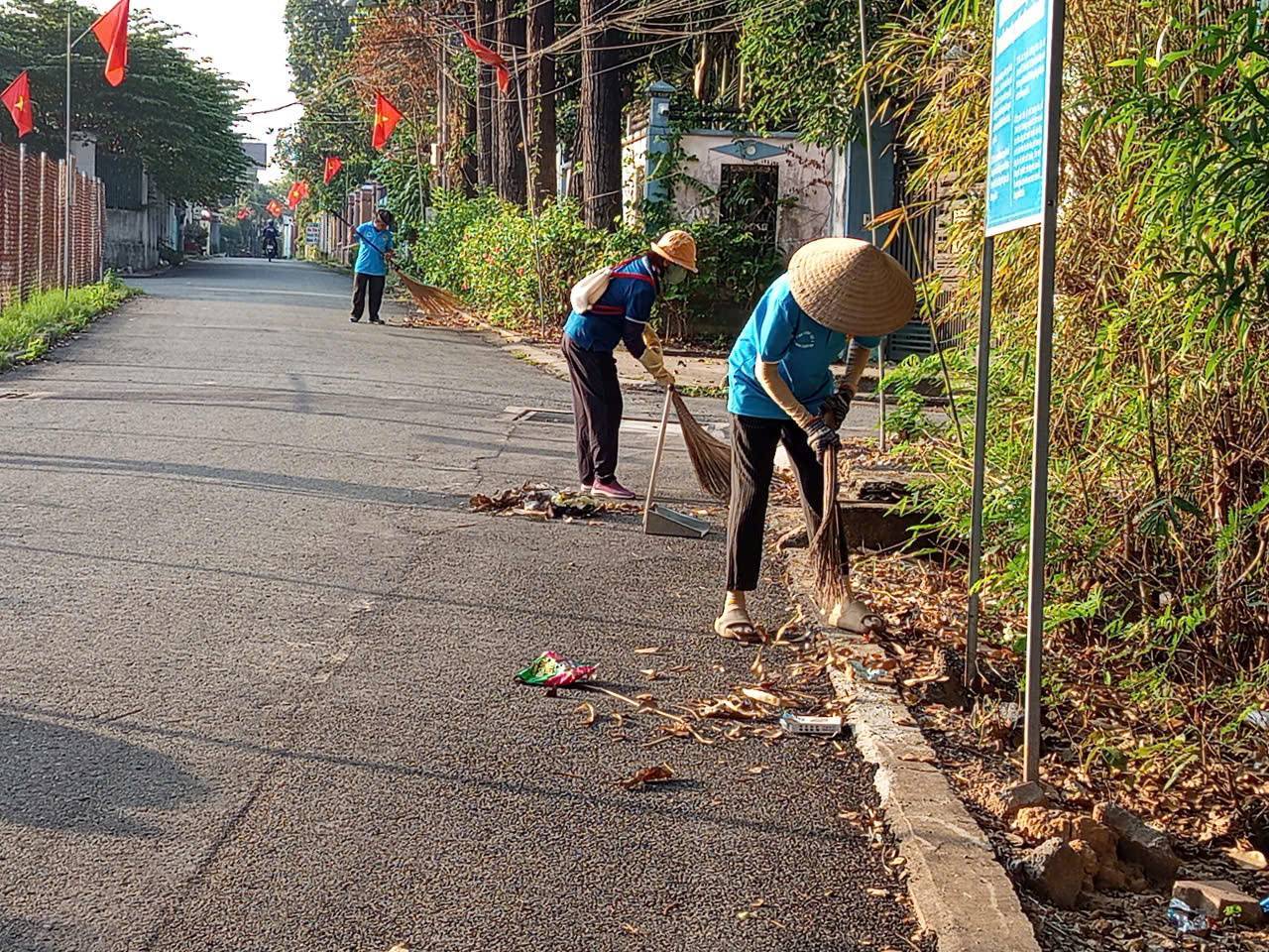 Theo đó Ban Công tác Mặt trận các khu phố đã phối hợp với các đoàn thể và đông đảo Nhân dân tham gia quét dọn, thu gom rác thải, phát quang bụi rậm, làm sạch các tuyến đường, hẻm; đồng thời chăm sóc các tuyến đường hoa, treo cờ Tổ quốc, góp phần chỉnh trang diện mạo đô thị ngày càng khang trang, sạch đẹp.