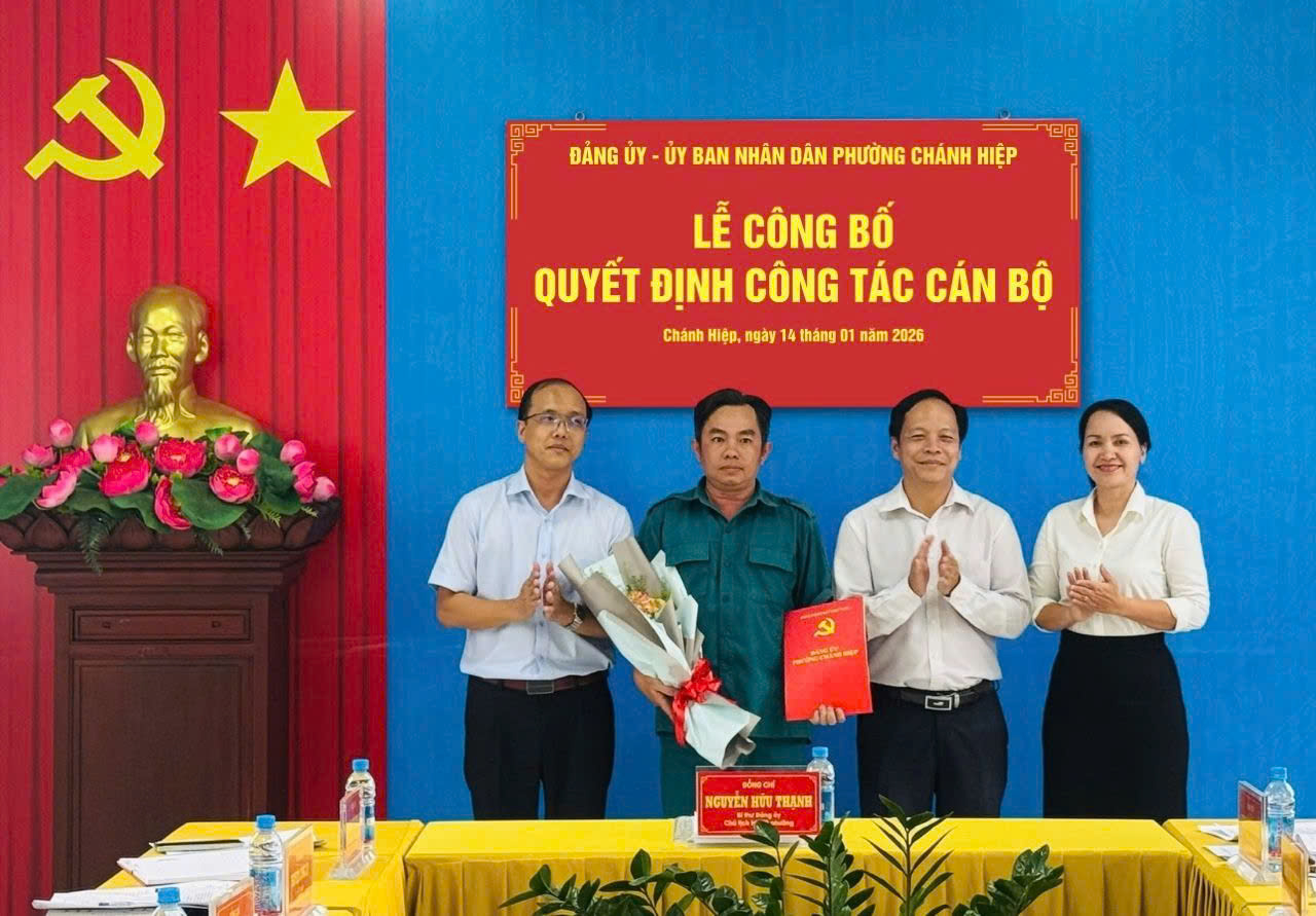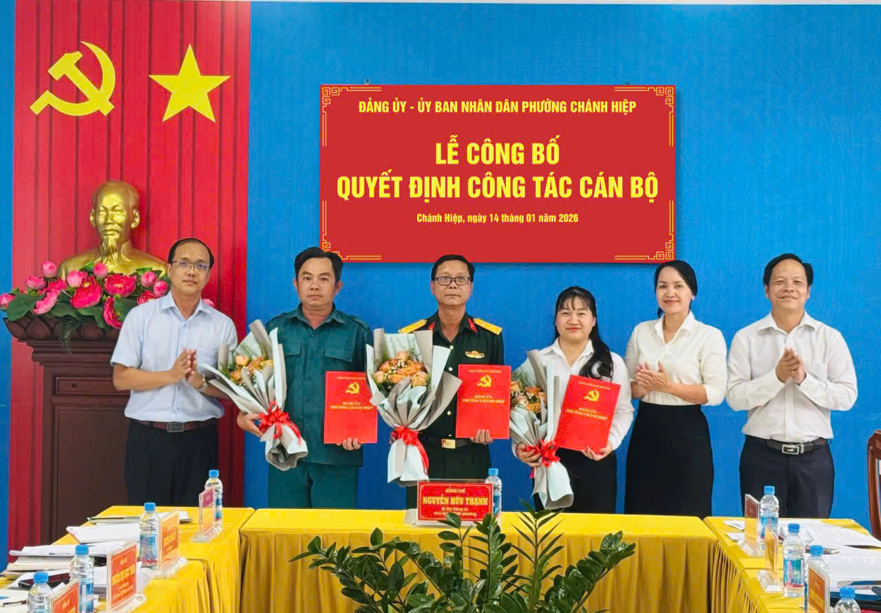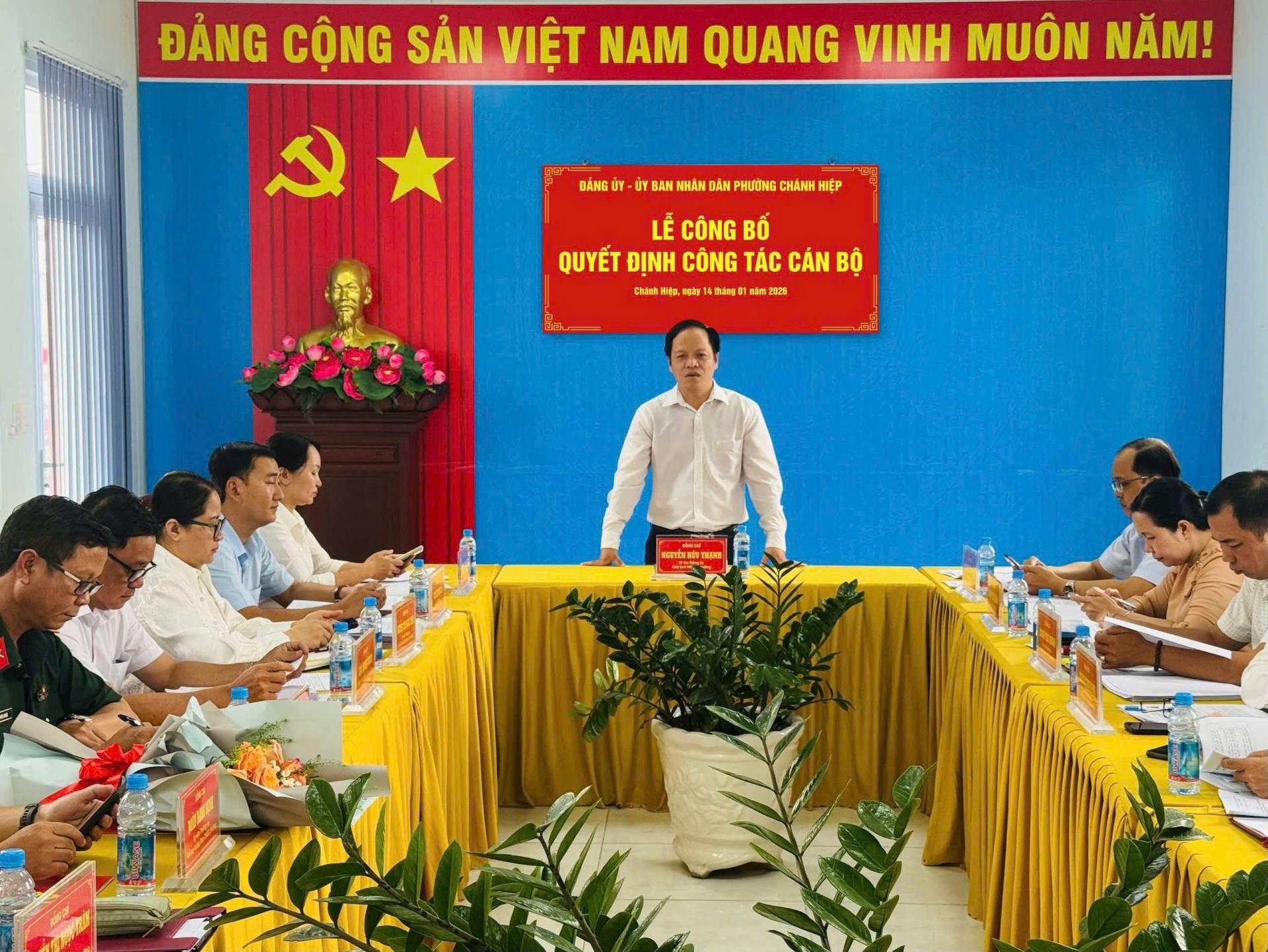 🌟🌟Chiều ngày 14/01/2026, Đảng ủy phường Chánh Hiệp tổ chức Hội nghị công bố quyết định công tác cán bộ. Đồng chí Nguyễn Hữu Thạnh – Bí thư Đảng ủy, Chủ tịch HĐND phường chủ trì Hội nghị; cùng đồng chí Trương Thị Thu Hiền – Phó Bí thư Thường trực Đảng ủy phường; đồng chí Phạm Minh Thiện – Phó Bí thư Đảng ủy, Chủ tịch UBND phường và các đồng chí trong Ban Thường vụ Đảng ủy phường.