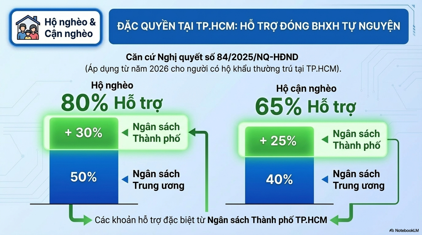 Đối với người thuộc hộ cận nghèo: Ngân sách Thành phố hỗ trợ thêm 25%, nâng tổng mức hỗ trợ lên 65% (bao gồm 40% từ Ngân sách Trung ương).