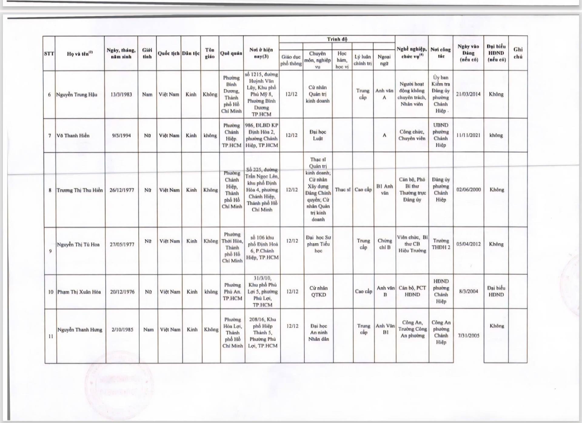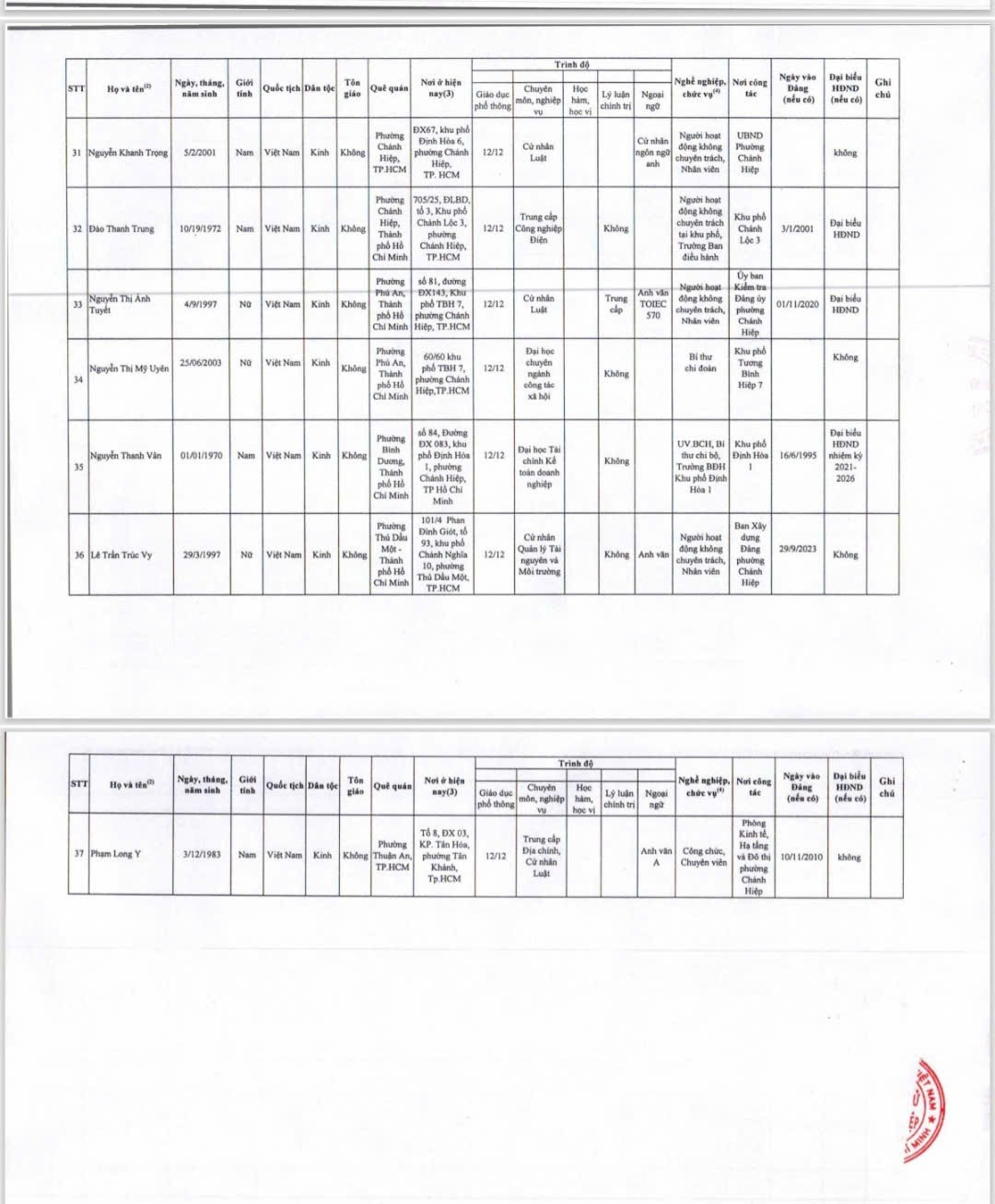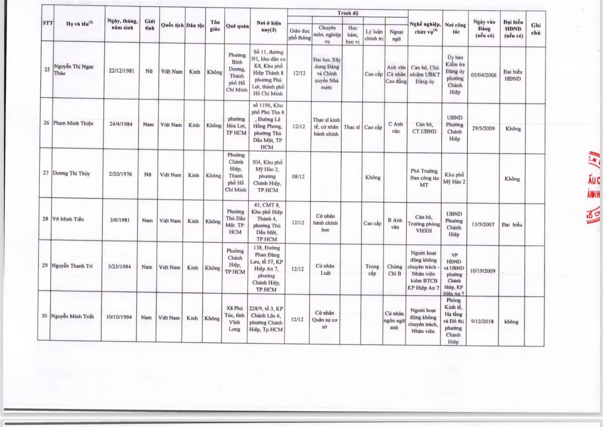 PHƯỜNG CHÁNH HIỆP THÔNG BÁO VỀ VIỆC CÔNG BỐ DANH SÁCH CHÍNH THỨC NHỮNG NGƯỜI ỨNG CỬ ĐẠI BIỂU HỘI ĐỒNG NHÂN DÂN PHƯỜNG CHÁNH HIỆP NHIỆM KỲ 2026-2031