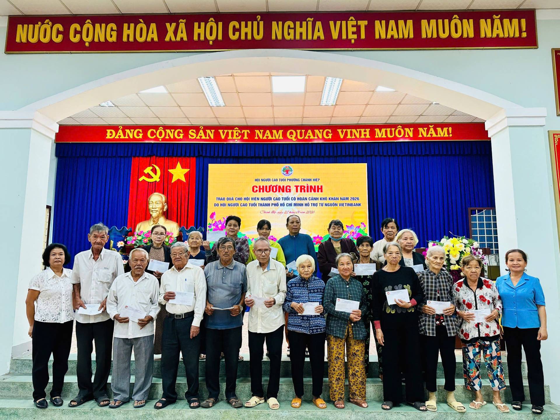 Dịp này, Hội Người Cao tuổi phường đã trao tặng 25 phần quà cho hội viên có hoàn cảnh khó khăn, với tổng trị giá 12.500.000 đồng, góp phần giúp các cô, chú, bác có thêm điều kiện vui xuân, đón Tết Nguyên đán Bính Ngọ ấm áp, nghĩa tình. Những phần quà được trao tặng với sự đồng hành, hỗ trợ của Hội Người Cao tuổi TP. Hồ Chí Minh và Ngân hàng VietinBank.