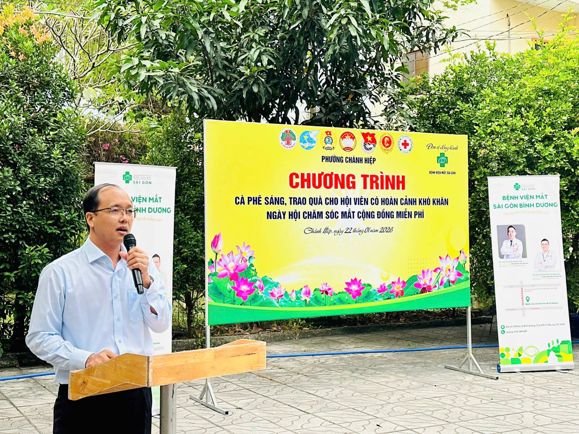 PHƯỜNG CHÁNH HIỆP TỔ CHỨC CHƯƠNG TRÌNH CÀ PHÊ SÁNG - TRAO QUÀ VÀ CHĂM SÓC MẮT MIỄN PHÍ CHO NGƯỜI DÂN.
