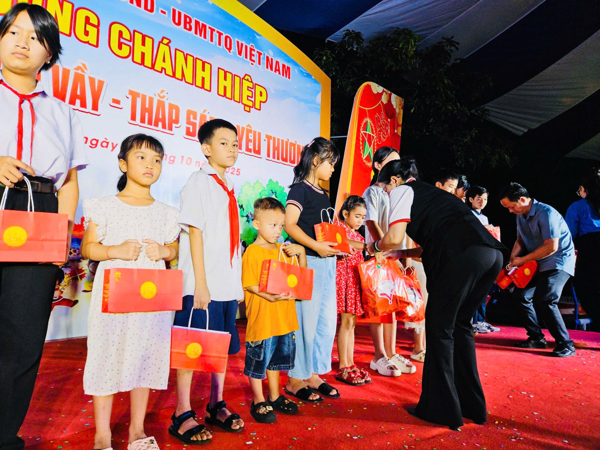 “Trung thu sum vầy, thắp sáng yêu thương” là hoạt động thiết thực thể hiện sự quan tâm của cấp ủy, chính quyền, đoàn thể và cộng đồng xã hội trong công tác chăm lo, bảo vệ, giáo dục thiếu niên, nhi đồng; đồng thời tạo sân chơi bổ ích, khích lệ các em nỗ lực học tập, rèn luyện, thực hiện tốt 5 điều Bác Hồ dạy.