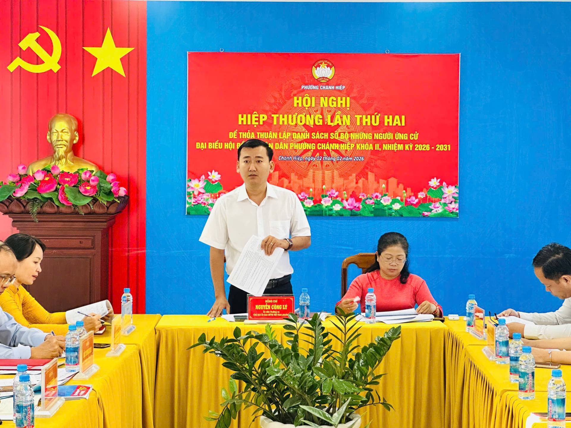 PHƯỜNG CHÁNH HIỆP: TỔ CHỨC HỘI NGHỊ HIỆP THƯƠNG LẦN THỨ HAI THỎA THUẬN LẬP DANH SÁCH SƠ BỘ NGƯỜI ỨNG CỬ ĐẠI BIỂU HĐND PHƯỜNG NHIỆM KỲ 2026 - 2031