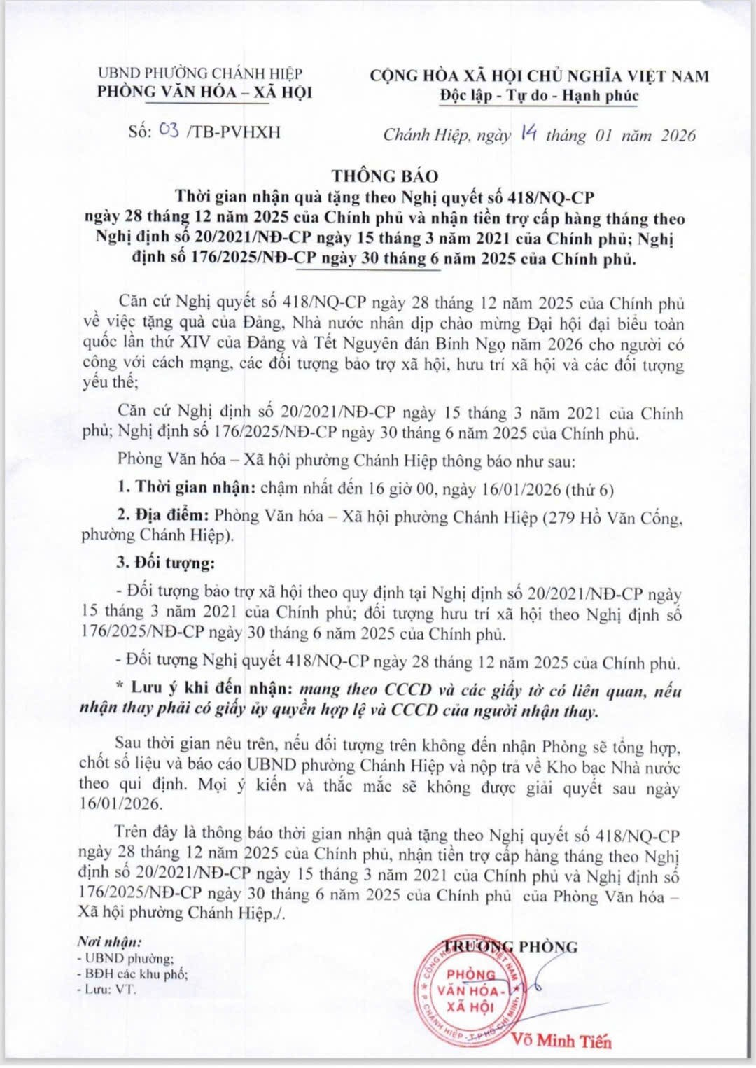 UBND PHƯỜNG CHÁNH HIỆP THÔNG BÁO