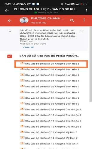ỦY BAN BẦU CỬ PHƯỜNG CHÁNH HIỆP ỨNG DỤNG BẢN ĐỒ SỐ TRA CỨU KHU VỰC BỎ PHIẾU