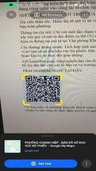 Bước 1: Dùng ứng dụng Zalo quét mã truy cập bản đồ số chọn Mở Link
